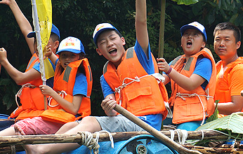 | 第二天,營員們上午完成了達(dá)芬奇密碼、挑戰(zhàn)120等等挑戰(zhàn),獲得了閘閥泅渡的道具,繩索,竹竿,油桶等。下午營員們在黃金溝水庫集合,收到了任務(wù)要扎一艘船渡過水庫去到對岸摘取果實(shí),營員們親自動(dòng)手搬運(yùn)木頭,油桶,利用有限的道具,合理利用資源扎出了一艘艘“戰(zhàn)艦”,渡過水庫之后完成果實(shí)的采摘。 |